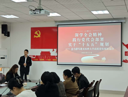在专题党课环节,刘文书记结合公司发展实际,作了题为 “深学全会精神 践行党代会部署 实干‘十五五’规划” 的授课。他指出,党的二十届四中全会为教育科技人才协同发展指明了方向,公司第二次党代会提出的 “一二三五八” 总体思路与 “八大工程” 部署,正是对全会精神的精准落地。刘文书记强调,suncitygroup太阳新城作为公司团队建设和人才培养的核心阵地,要聚焦博士人才引育、国自然项目攻坚、高水平团队建设等关键任务,将全会精神转化为推动教学科研提质增效的具体行动,为公司建设高水平医科大学筑牢根基。