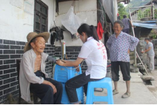 师生在青龙村第一驻村书记李周义的带领下,走访农户,调研当地的医疗情况以及居民的健康情况,并为行动不便的老人测量血压。车晴娅、罗婷婷、汪牧非、陈玉等同学不仅向村民们宣讲喝生水的危害以及狂犬病的危害与防治,还为学龄期青少年进行脊柱侧弯检测。活动过程中,同学们与村民深度交流,一方面向村民科普在日常生活中如何采取常见疾病的防治措施,增强健康意识,铸就健康生活,另一方面同学们也更加切身了解到广大农村的常见疾病类型和就医环境,为今后的医学课程学习和医疗工作埋下了求知的种子。
