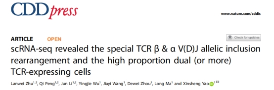 近日,公司姚新生课题组2021级研究生朱兰伟、彭琪和李俊副教授为本文第一作者、姚新生教授为通讯作者,在国际知名期刊《Cell Death & Disease》(IF:9.0,中科院一区Top期刊)上在线发表了题为“scRNA-seq revealed the special TCR β & α V(D)J allelic inclusion rearrangement and the high proportion dual (or more) TCR-expressing cells”的研究论文。该研究通过单细胞RNA测序技术揭示了高比例的双或多TCR表达T细胞,并对其潜在机制进行了探讨。该研究获得国家自然科学基金和贵州省高层次人才项目的支持。论文链接:https://www.nature.com/articles/s41419-023-06004-7。