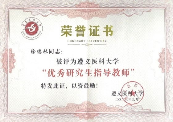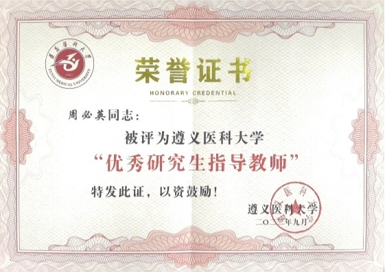 优秀研究生指导教师获奖证书