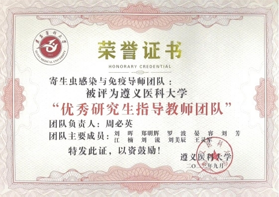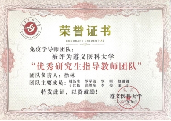 近日,公司发布了《suncitygroup太阳新城关于表彰2020-2022年度优秀研究生导师、优秀导师团队的决定》(遵医校办发〔2023〕6号)文件,公司徐林教授领衔的“免疫学导师团队”和周必英教授领衔的“寄生虫感染与免疫导师团队” 获评suncitygroup太阳新城“优秀研究生指导教师团队”;于红松教授、章涛教授、周必英教授、侯晓晖教授、杨加伟教授、徐德林教授、庹利教授获评suncitygroup太阳新城“优秀研究生指导教师”。